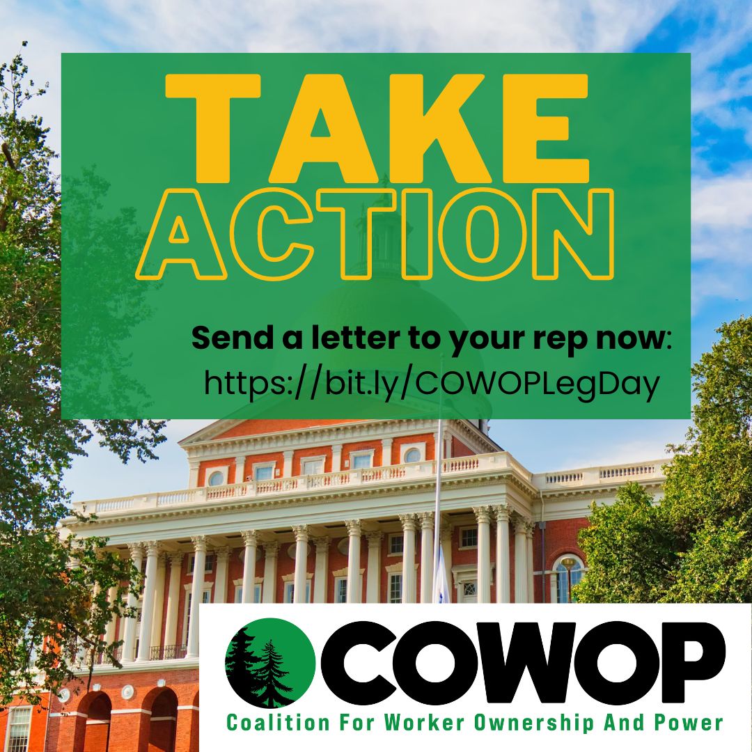 COWOP envisions a world where workers are valued decision makers, with agency and ideas that get implemented in our workplaces. Worker-owned cooperatives bring this vision to life by giving everyday people power over their work. Go to https://bit.ly/COWOPLegDay to tell your MA legislators to invest in the well being of workers and the economy in the Massachusetts.