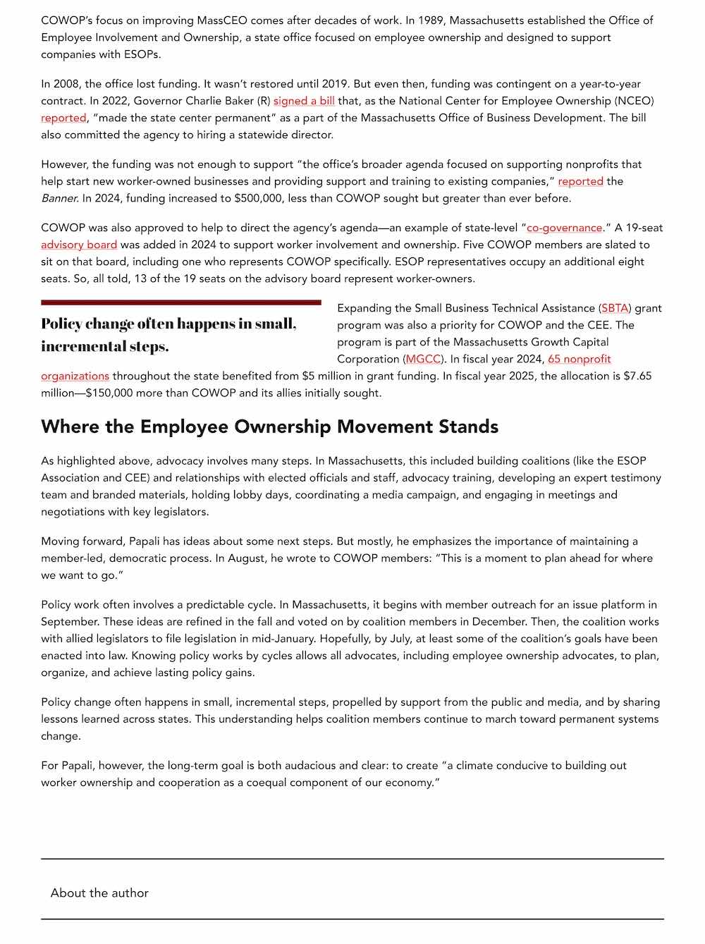 Employee Ownership Advocates Make Policy Gains in Massachusetts