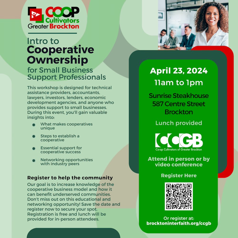 This promotion includes a flyer with QR code and square social media graphics. The registration form was managed through the client Neon CRM. CoopMatters set up and managed an email campaign.